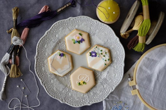 おまけにクッキーに乗せたお花の色と