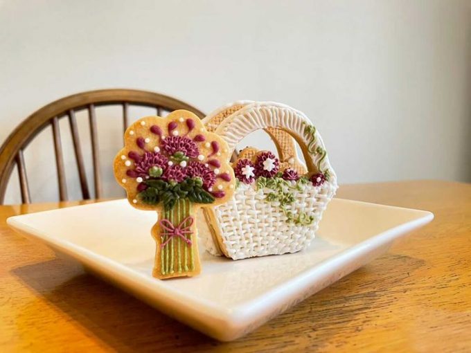 立体的なフラワーバスケットクッキーを